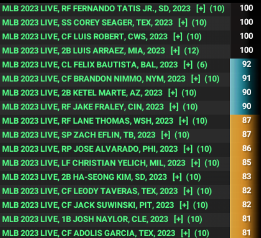 And I was able to do this with the live update. There are three more golds that cut off at the bottom of the image - McCutchen, Hays and somebody else. If the cutoff date had been July 9th instead of July 5th, as I was expecting, Murphy, Betts and Munoz all would have gone to 100 and I'd have another 600K - and it would have been a truly excellent update.
