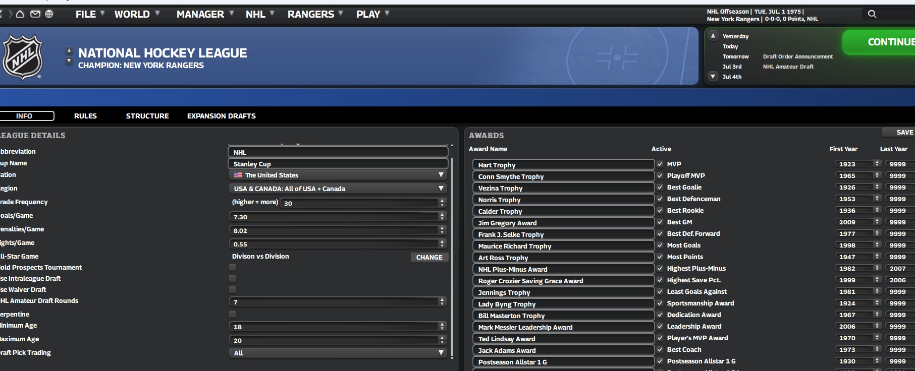 I can't find it anywhere, but is there an option to set the league minimum age? One the 1st July edit, you can change the draft age limit, but not the league minimum. So apart from having to edit players into your team, (which is fine) the computer can't sign their players until the age of 20. I actually lost a player to FA after the 2nd year of him being drafted. I didn't sign him before the league advanced and I lost his rights. Last edited by lawrence97; 11-14-2023 at 05:19 AM. |