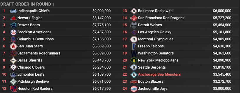 Also, I just realized that Denver and Newark share the same team name, so now Newark will be called the Eagles.